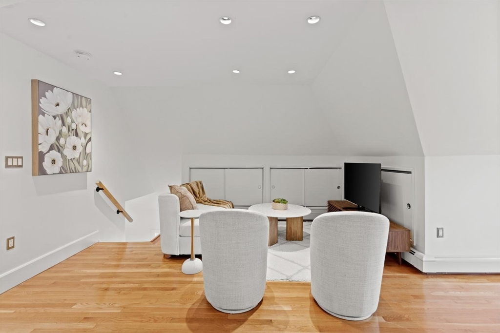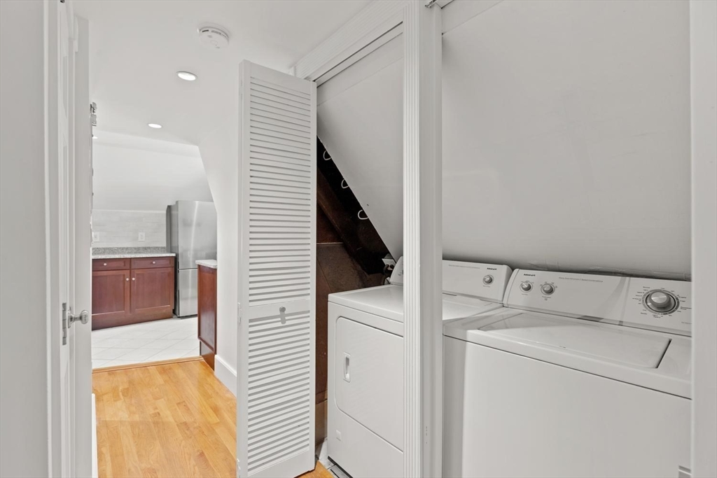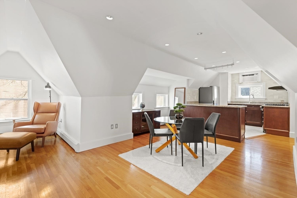 Bright top-floor 2-bed condo in the heart of Inman Square - where Cambridges' energy and convenience come together. Just around the corner from The Druid, known for one of the best pints of Guinness in the city, you're steps from restaurants, Whole Foods, and everyday essentials, with the Red Line just ~0.5 miles away. One flight up to the unit and another to a sun-filled, open-concept living and dining space with room for an office nook. Windows on multiple exposures bring in great natural light throughout. Move-in ready with a renovated bathroom, updated kitchen featuring new stove, dishwasher, and backsplash, plus fresh paint. Hardwood floors, in-unit laundry, three storage closets, and mostly updated windows. Pet-friendly association with common outdoor space. Ideal for end-users or investors alike.