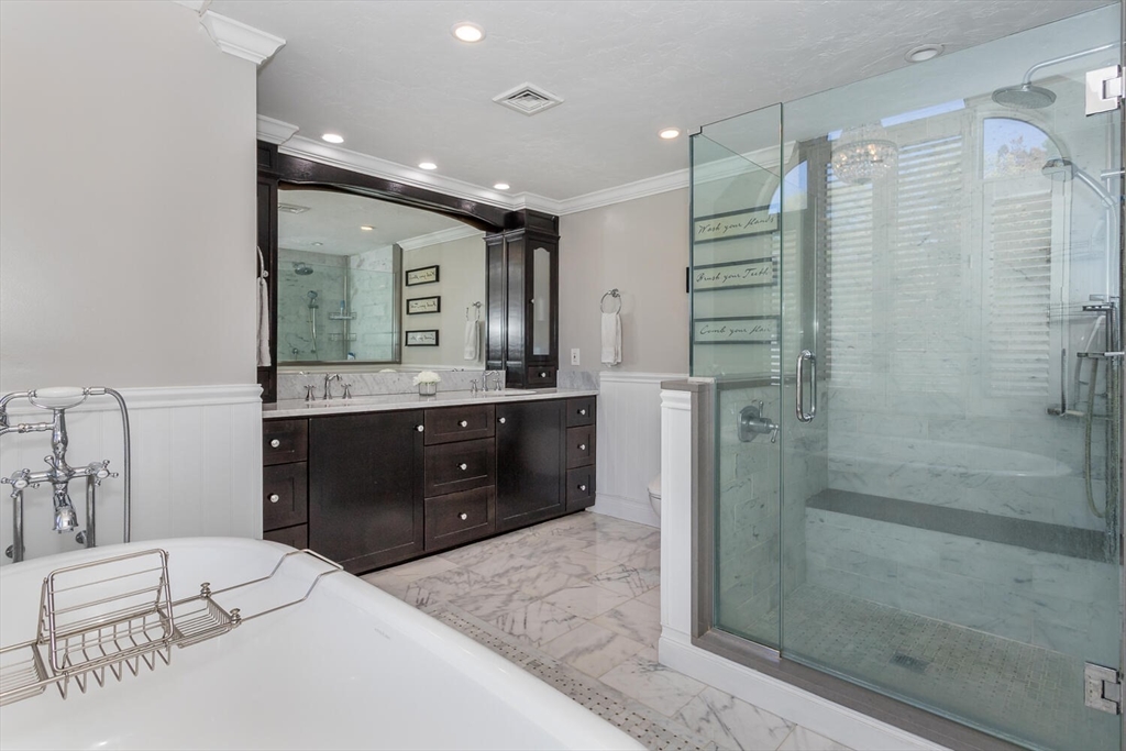 Welcome to 18 Darling way! This young colonial has been meticulously maintained and is ready for it's new owners! Featuring a wide open floor plan, custom designed kitchen with quartz counters, stainless appliances, peninsula and center island. A fire placed family room adjoins the open concept kitchen space, perfect for entertaining. Formal dining room with custom built wet bar/ coffee station and an incredible first floor office with built ins. The second floor features three spacious bedrooms including a king size primary suite with a newly updated primary bath complete with a double vanity, soaking tub and tiled shower with glass doors. A fully finished recreation room in the basement and a half bath with additional laundry room. The accessory apartment is a great bonus feature with four rooms, two bedrooms, full bath, kitchen, private entrance and balcony. The three car garage and amazing lot with an entertainers dream patio and fire place complete this one of a kind property.