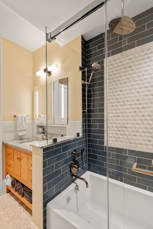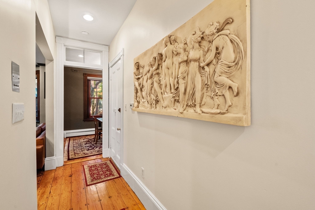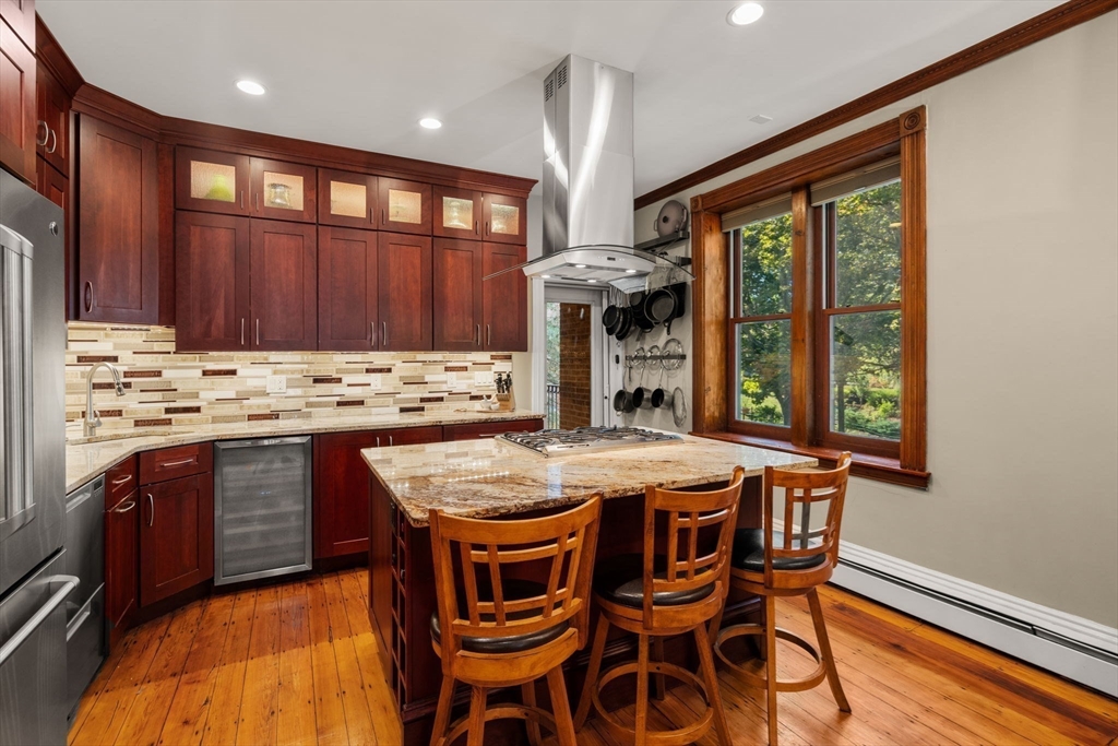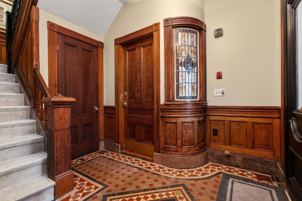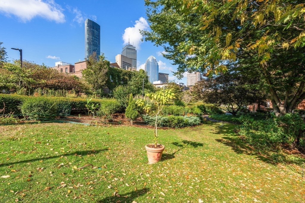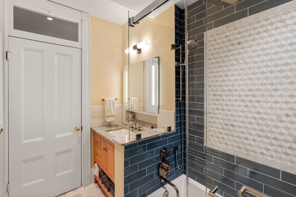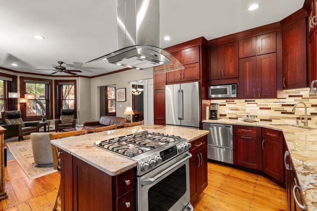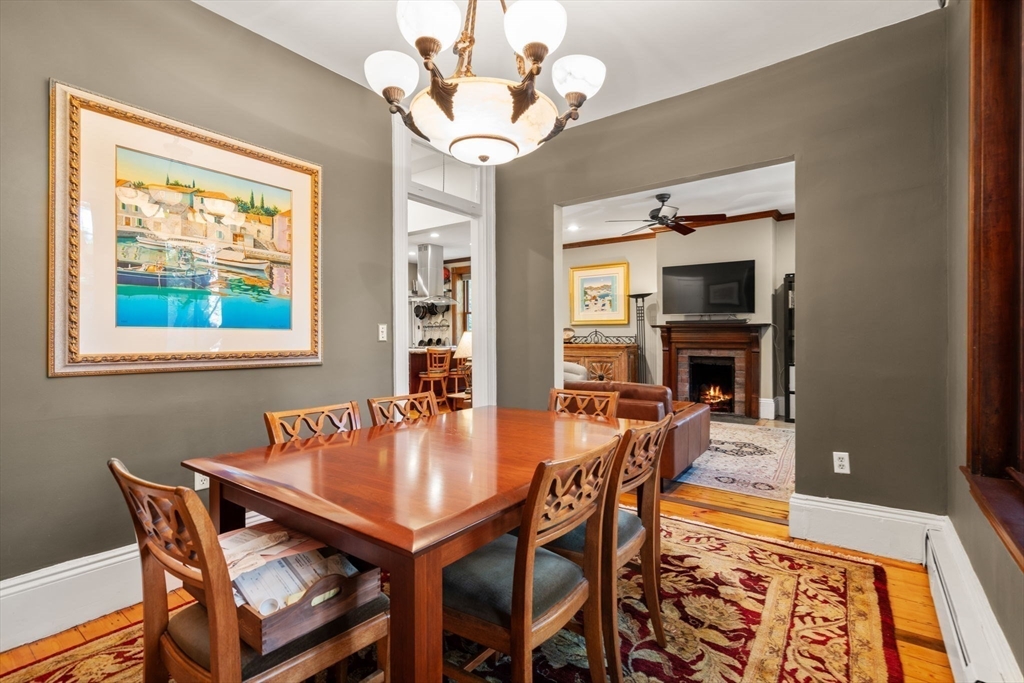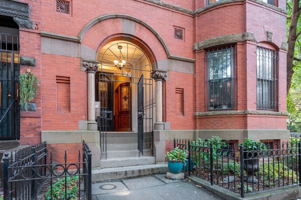 New Listing! South End. On The Park. Parking included. Wonderful Deck. Spectacular Rare Corner home with 13 windows + 3 exposures providing beautiful natural light. This home overlooks the Rose Garden at the Southwest Corridor Park. From the deck enjoy dining al fresco + morning coffee. Inviting living room, perfect for entertaining, with tall ceilings, wood floors, fireplace + a separate dining area which could also be used as a home office. Sleek Open plan kitchen w/ breakfast bar, stainless steel appliances, including gas cooking, stone countertops/breakfast bar + plenty of cabinetry/work surfaces. Stunning bathroom with custom tile work, tub + modern fixtures. In unit washer/dryer. Great closets including two walk ins. Additional bonus storage in basement. Picturesque leafy street with brick sidewalks & historic street lamps. Live in the exciting South End neighborhood near restaurants, shopping, green spaces + more.