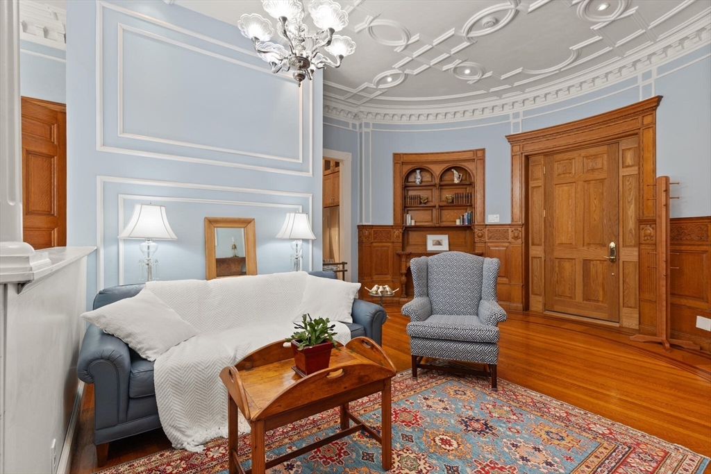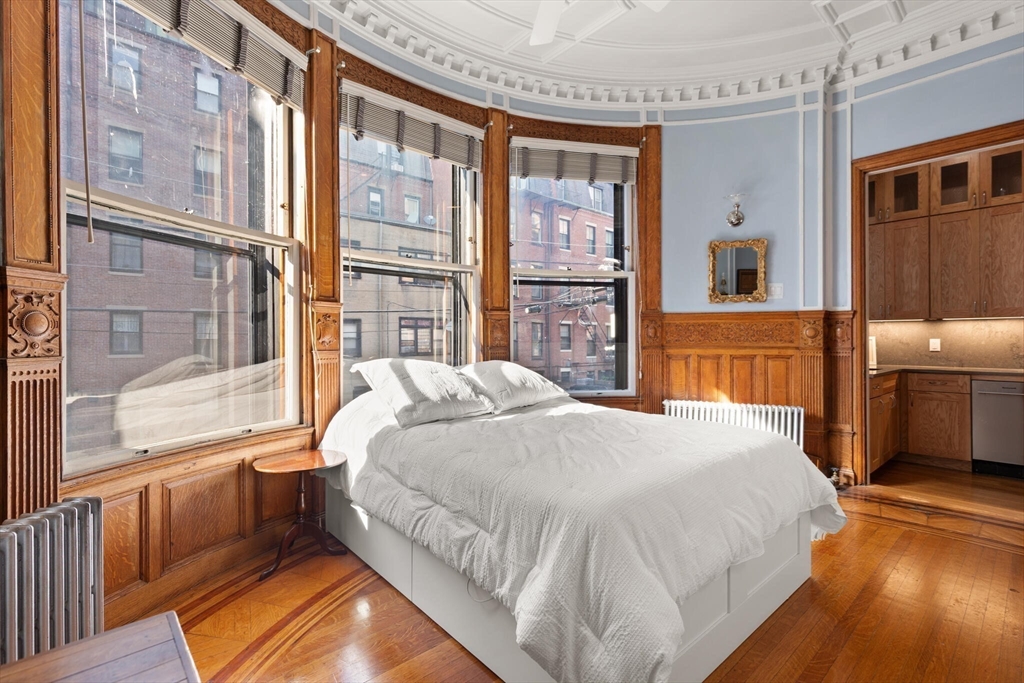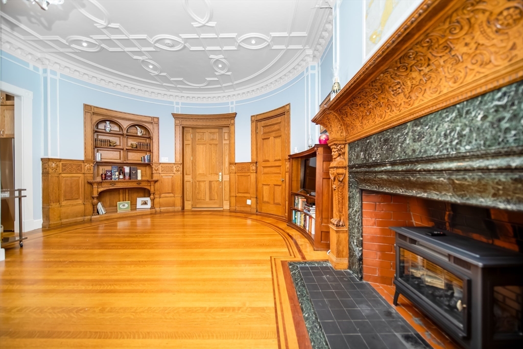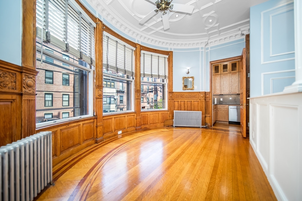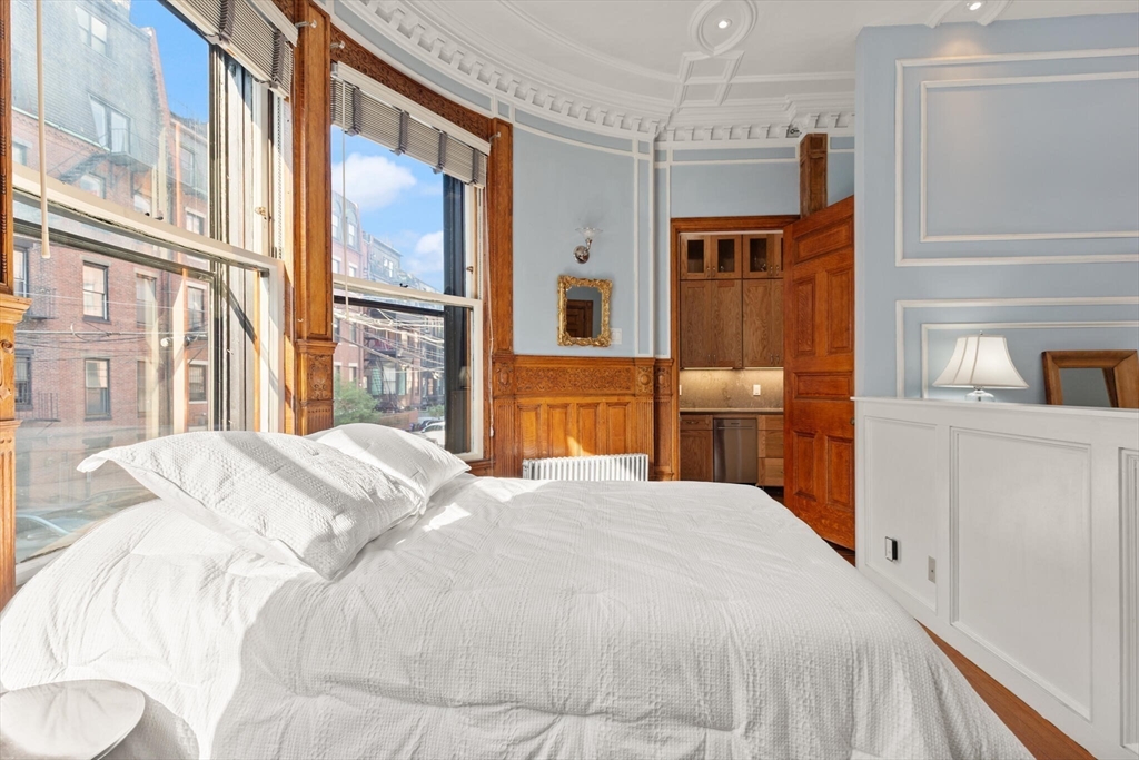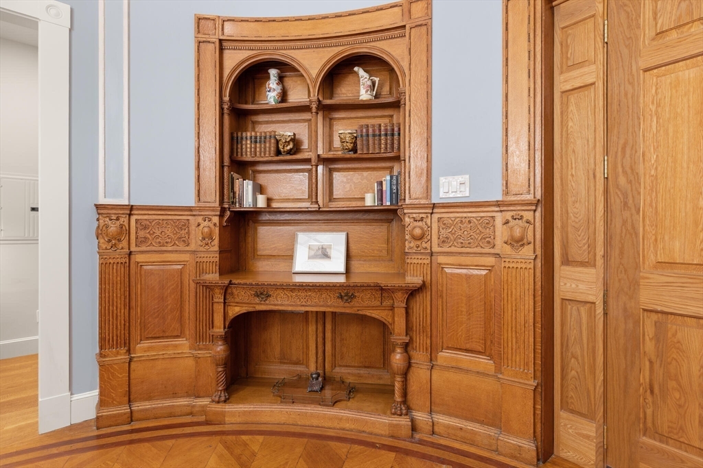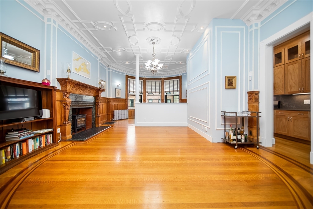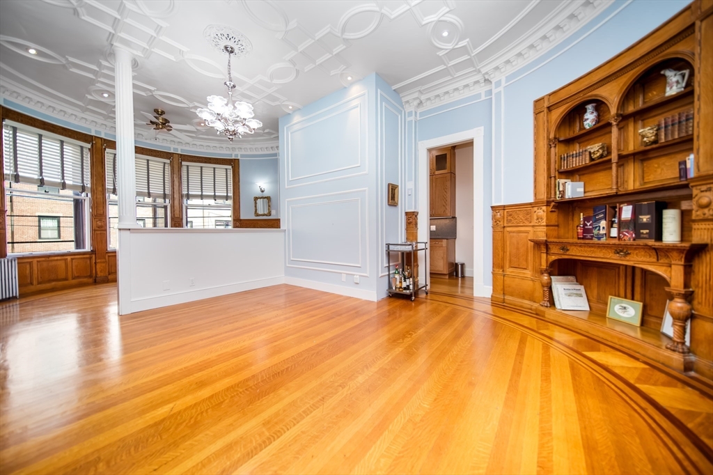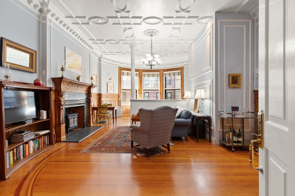 Step into the former grand parlor of a Back Bay mansion designed by architect Charles Brigham, reimagined for modern living. Built in 1887 for Henry Austin Whitney, a prominent shoe manufacturer & railroad executive, 261 Marlborough is a French Academic-style brownstone steeped in Boston's history. This 640 sq. ft. studio, once part of the Whitney family's home, still showcases ornate millwork, a monumental fireplace, and ceiling medallions that once hosted the city's Gilded Age elite. Now transformed with a chef's kitchen featuring bespoke cabinetry, quartz counters, and under-cabinet lighting, plus a spa-inspired bath with rainfall shower & clawfoot tub, the residence blends history with luxury. With soaring ceilings, abundant natural light, and potential to convert to a 1-bedroom, it offers rare appeal. Perfectly set between Fairfield and Exeter Streets, just blocks from the Public Garden and Commonwealth Mall, it places you in the heart of Back Bay.