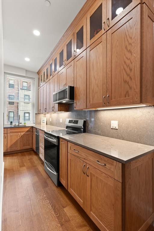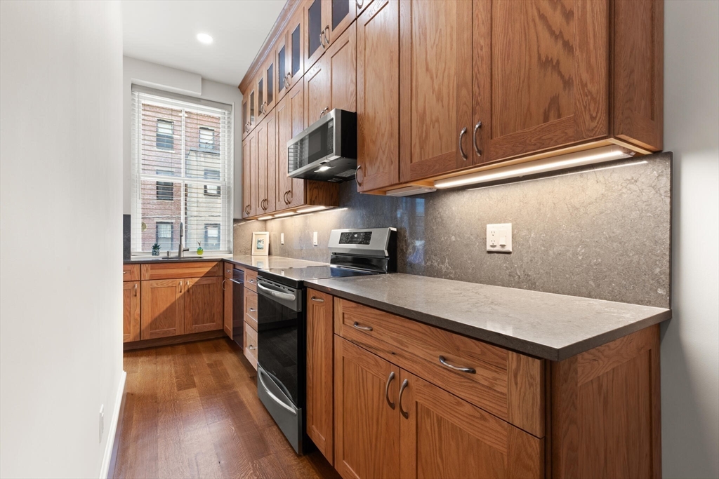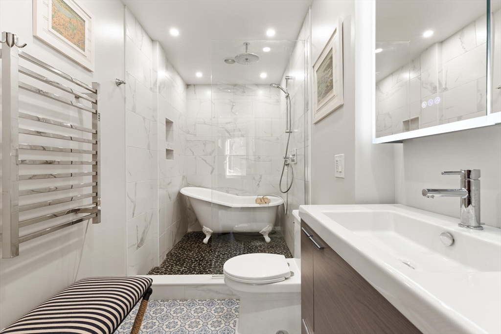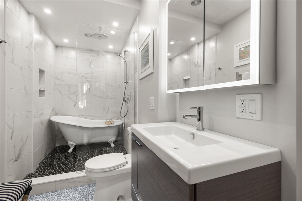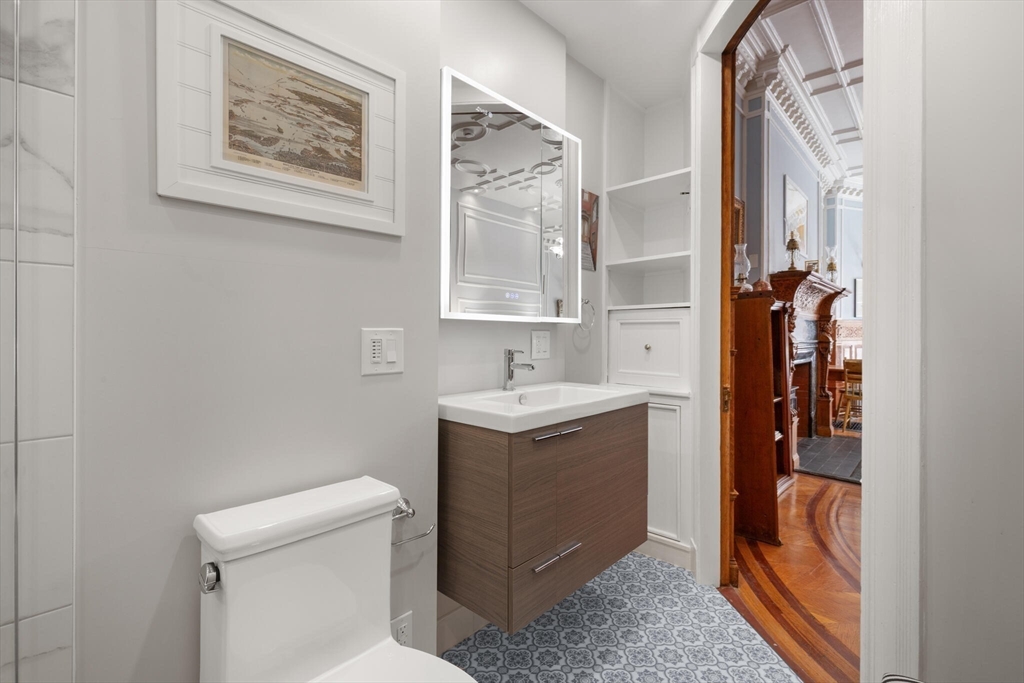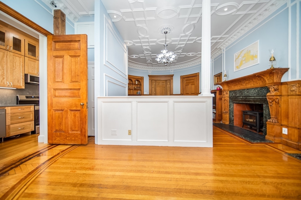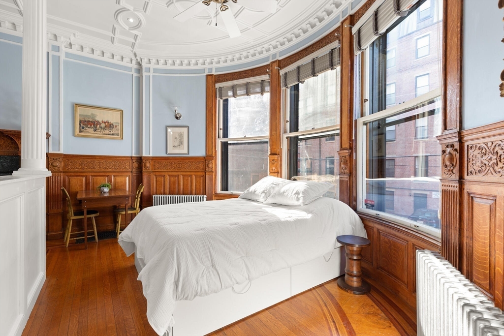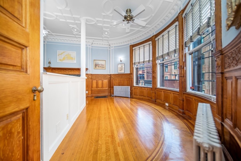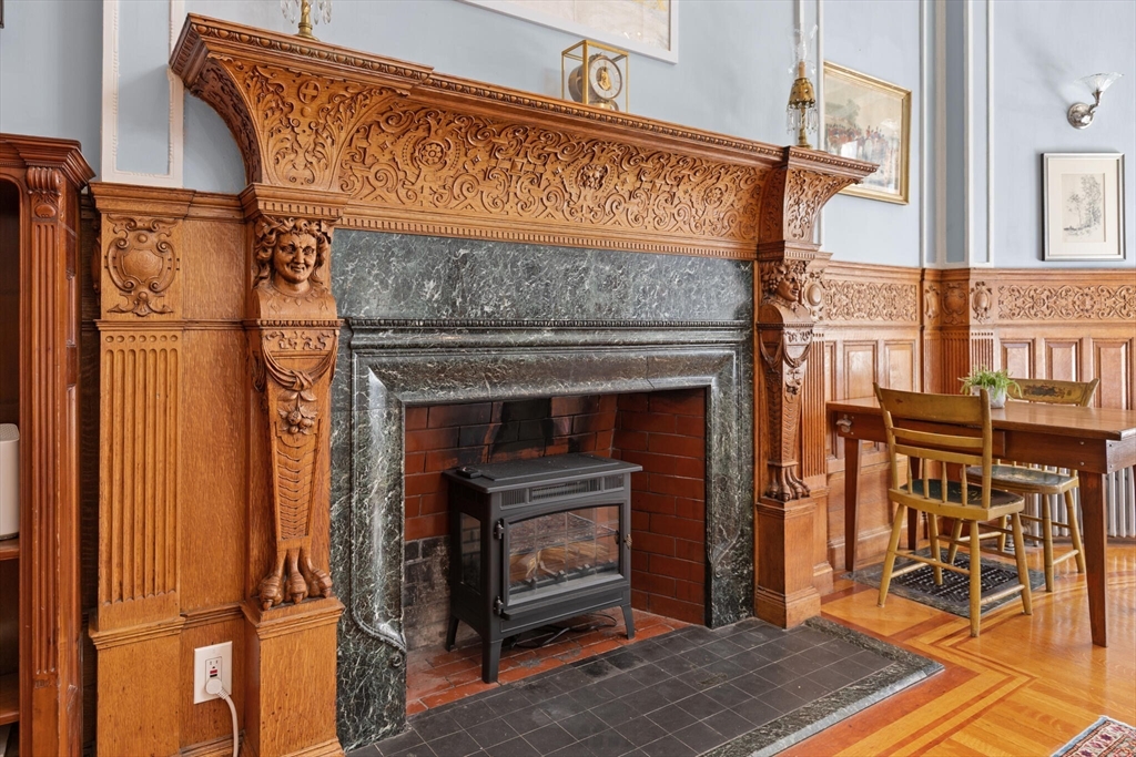 Step into the former grand parlor of a Back Bay mansion designed by architect Charles Brigham, reimagined for modern living. Built in 1887 for Henry Austin Whitney, a prominent shoe manufacturer & railroad executive, 261 Marlborough is a French Academic-style brownstone steeped in Boston's history. This 640 sq. ft. studio, once part of the Whitney family's home, still showcases ornate millwork, a monumental fireplace, and ceiling medallions that once hosted the city's Gilded Age elite. Now transformed with a chef's kitchen featuring bespoke cabinetry, quartz counters, and under-cabinet lighting, plus a spa-inspired bath with rainfall shower & clawfoot tub, the residence blends history with luxury. With soaring ceilings, abundant natural light, and potential to convert to a 1-bedroom, it offers rare appeal. Perfectly set between Fairfield and Exeter Streets, just blocks from the Public Garden and Commonwealth Mall, it places you in the heart of Back Bay.