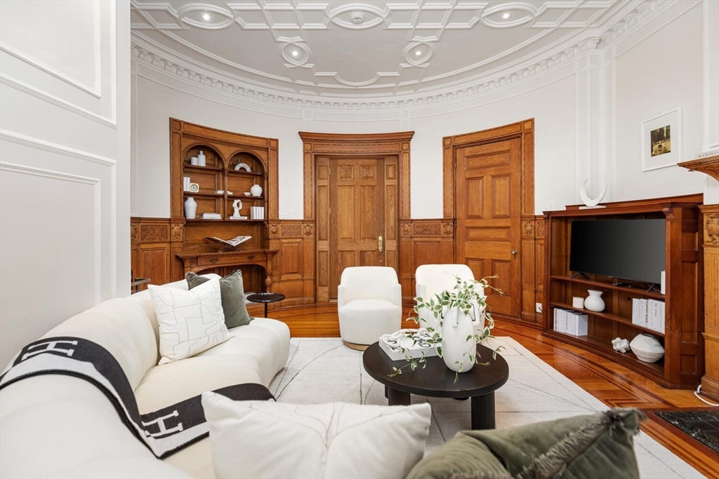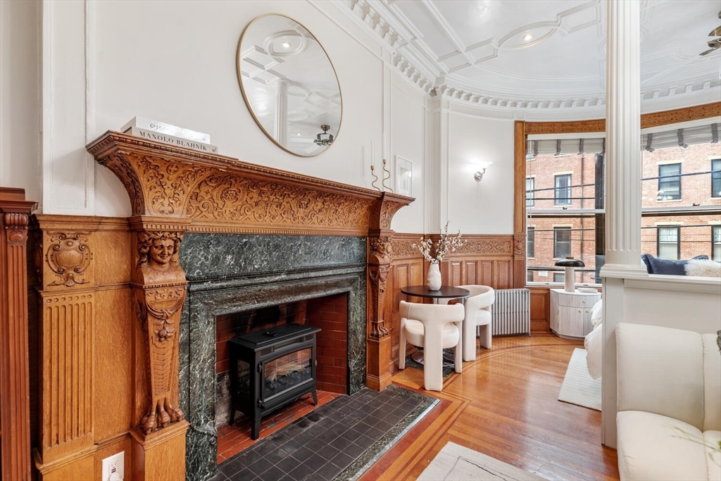 Step into the former grand parlor of a Back Bay mansion designed by architect Charles Brigham, reimagined for modern living. Built in 1887 for Henry Austin Whitney, a prominent shoe manufacturer & railroad executive, 261 Marlborough is a French Academic-style brownstone steeped in Boston's history. This 640 sq. ft. studio, once part of the Whitney family's home, still showcases ornate millwork, a monumental fireplace, and ceiling medallions that once hosted the city's Gilded Age elite. Now transformed with a chef's kitchen featuring bespoke cabinetry, quartz counters, and under-cabinet lighting, plus a spa-inspired bath with rainfall shower & clawfoot tub, the residence blends history with luxury. With soaring ceilings, abundant natural light, and potential to convert to a 1-bedroom, it offers rare appeal. Perfectly set between Fairfield and Exeter Streets, just blocks from the Public Garden and Commonwealth Mall, it places you in the heart of Back Bay.