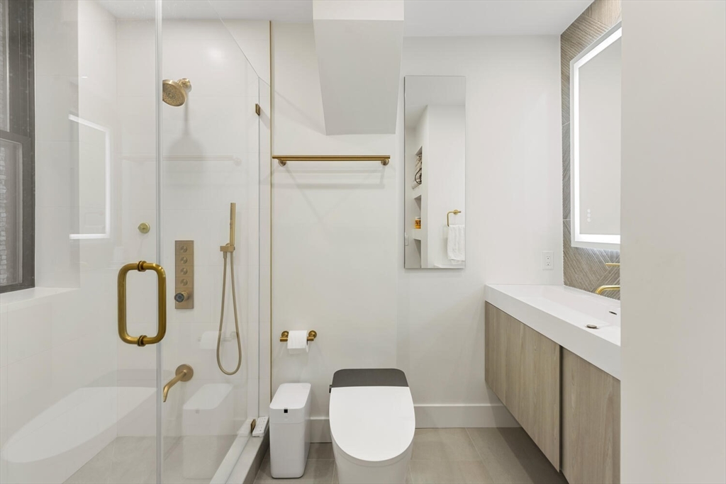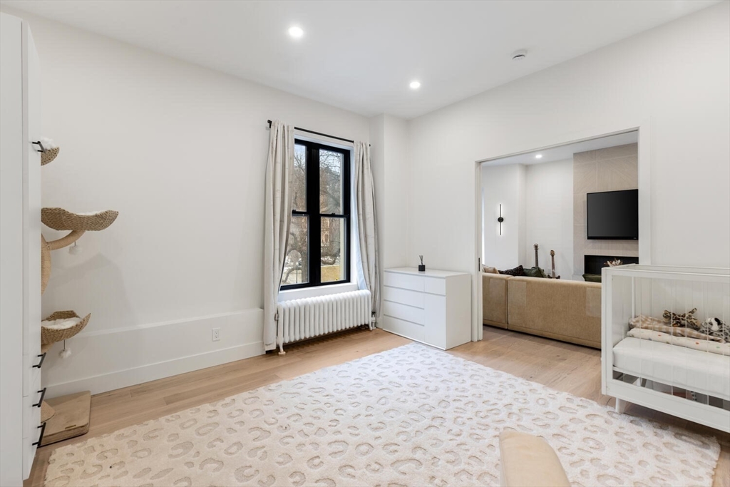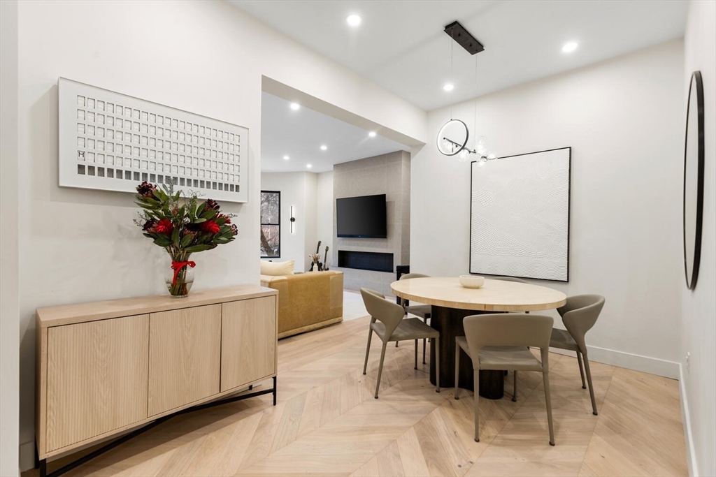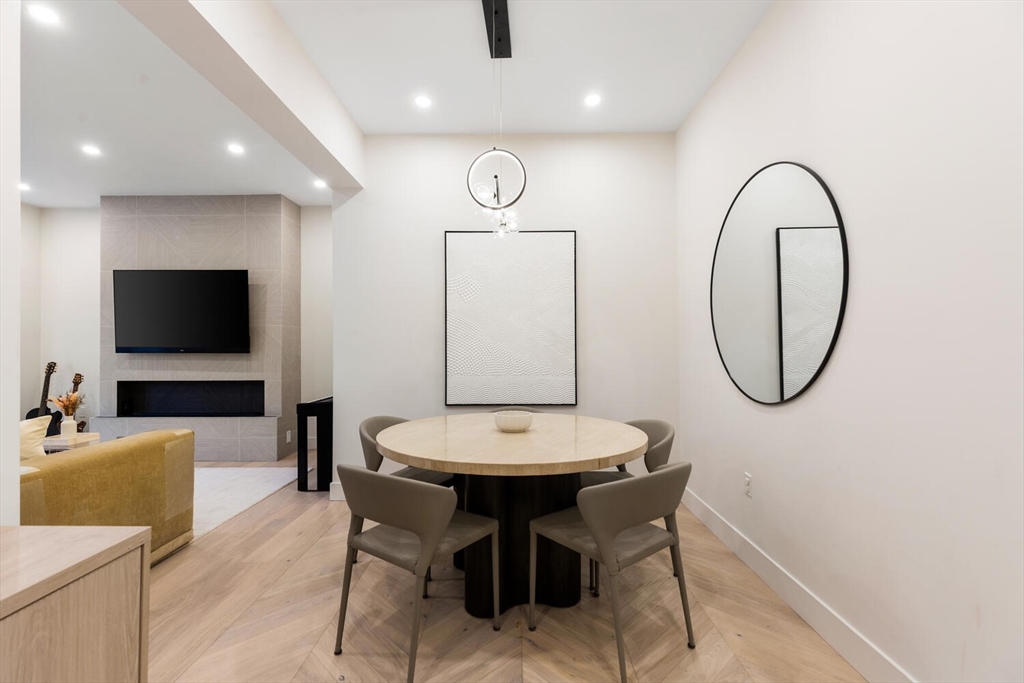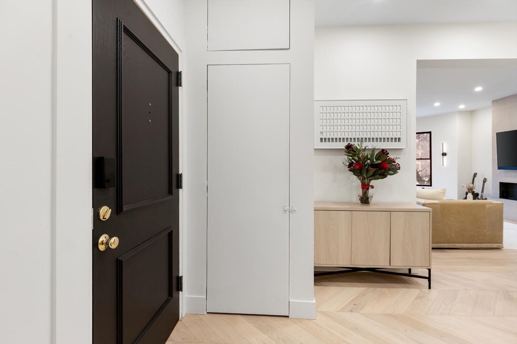 Residence 24 at 382 Commonwealth Avenue is a fully gut-renovated two-bedroom, two bath home offering refined modern living in the heart of Back Bay. Rebuilt from the studs with exceptional attention to detail, the residence blends contemporary design with classic Commonwealth Avenue elegance. Sunlight pours through oversized windows overlooking the Commonwealth Avenue Mall, illuminating an open living and dining space anchored by a sleek water vapor fireplace. The dining area showcases striking chevron hardwood flooring, while wide-plank floors continue throughout the home. The kitchen features custom cabinetry, stone countertops, and high-end appliances, and all bathrooms have been completely redesigned with clean, spa-inspired finishes. Additional highlights include in-unit laundry and a professionally managed elevator building, moments from the Charles River Esplanade, Newbury Street, Copley Square, and Back Bay's premier dining and shopping.