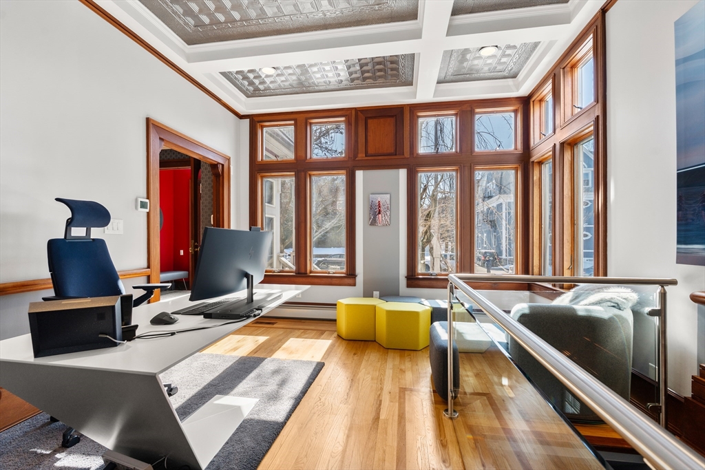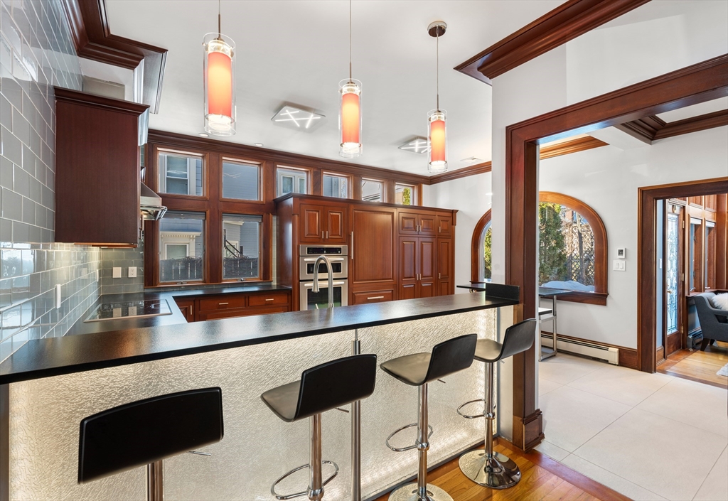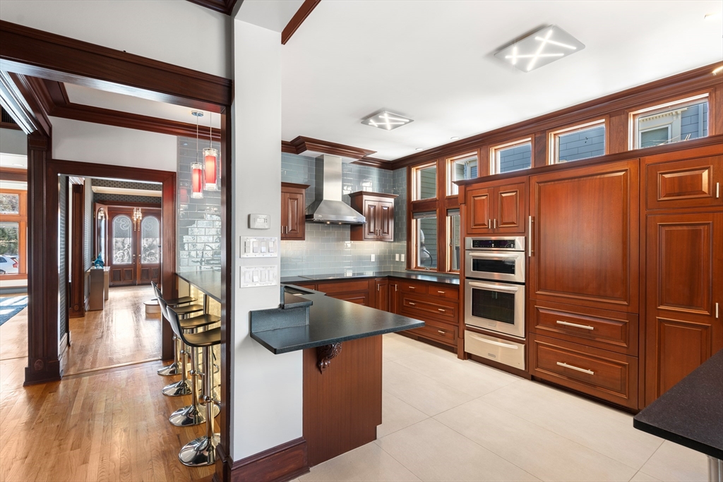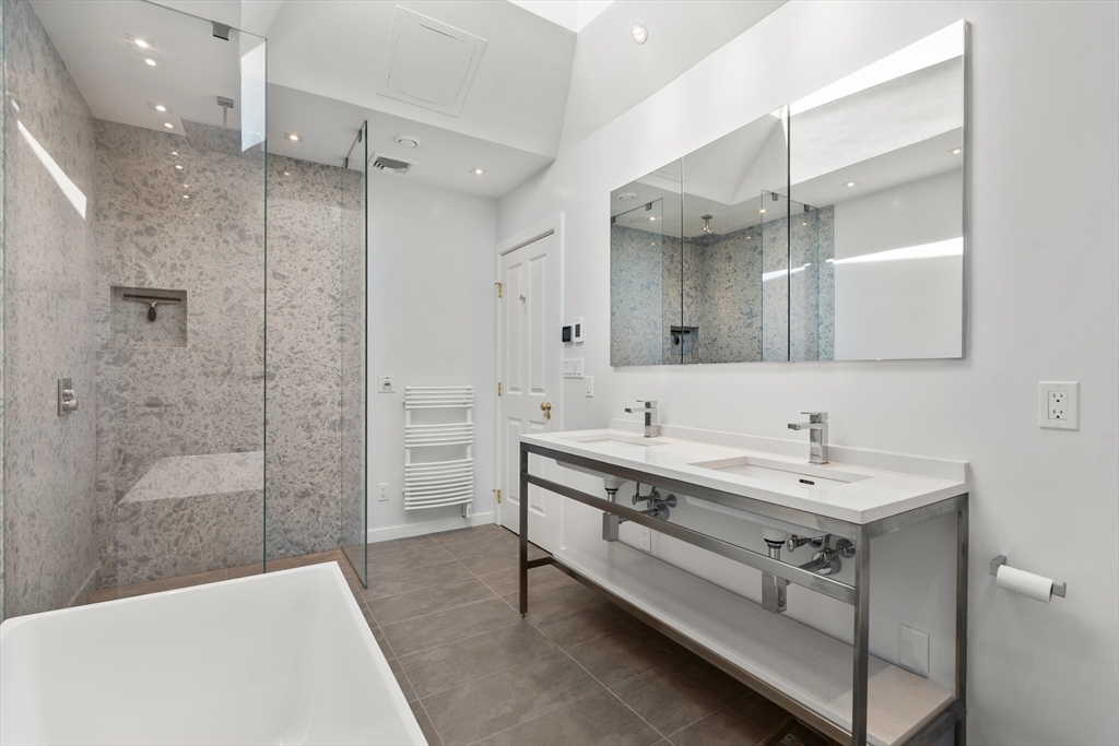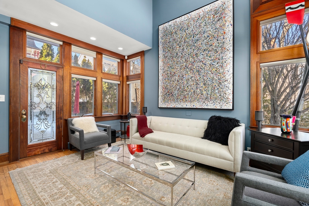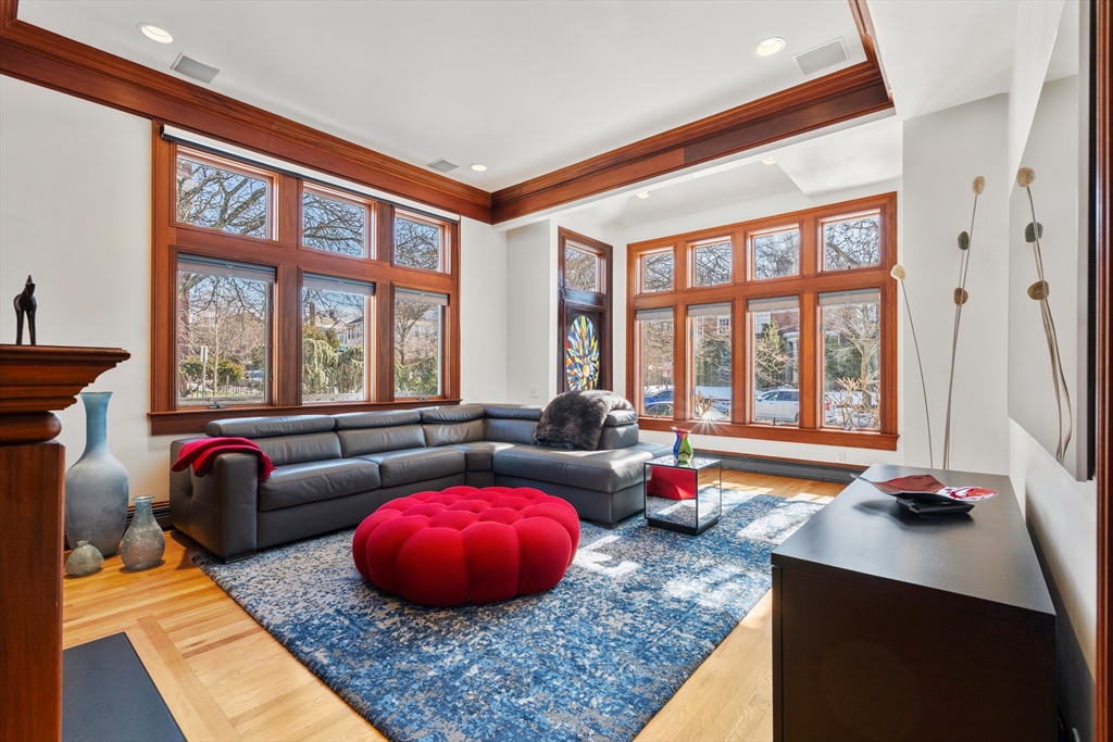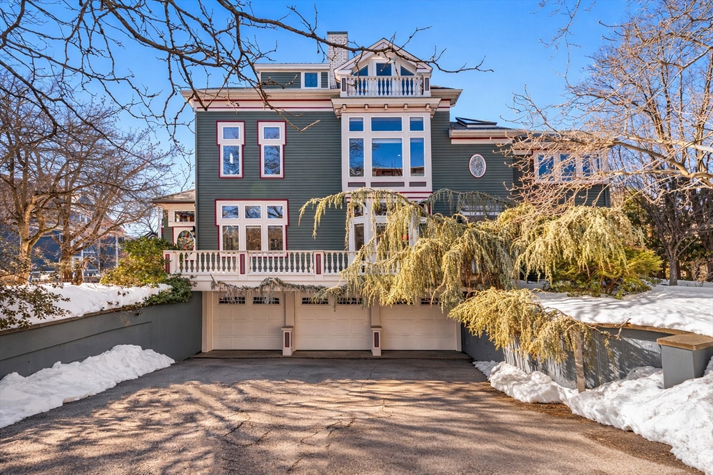 A masterpiece built & modernized for luxe living, appreciate the meticulous quality and craftsmanship throughout this renovated home. The main level features an open floorplan centered around the curved staircase. A family room features an elegant mahogany wall encasing a gas fireplace. The dining room offers a bay window. A gourmet eat-in kitchen has iced-crack glass with HUE lighting & honed granite. The den has a 19' ceiling. Completing the level is a mahogany-accented office with a tin ceiling, glass-encased staircase to the lower level, & mahogany 1/2 bath. On the 2nd floor, the primary suite has double French doors, a sitting area & deck, built-in closet & remodeled skylit bath with a quartz shower. A 2nd bedroom with floor to ceiling windows & en-suite bath & 3rd bedroom with its own bath complete the level. An expansive 3rd floor suite includes a bedroom with a study & bath. The lower level houses a gym & direct access to the 3-car heated garage & heated driveway.